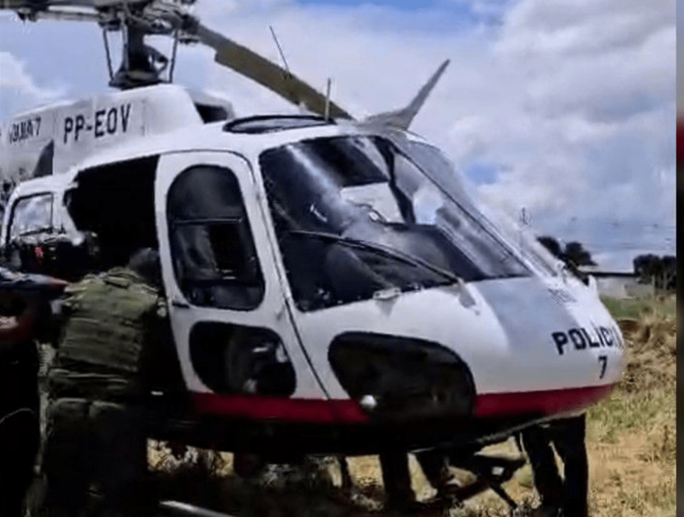 Um trabalhador foi resgatado pelo helicóptero Águia, da Polícia Militar, após cair do telhado de uma casa em construção em Cerquilho (SP), na manhã desta