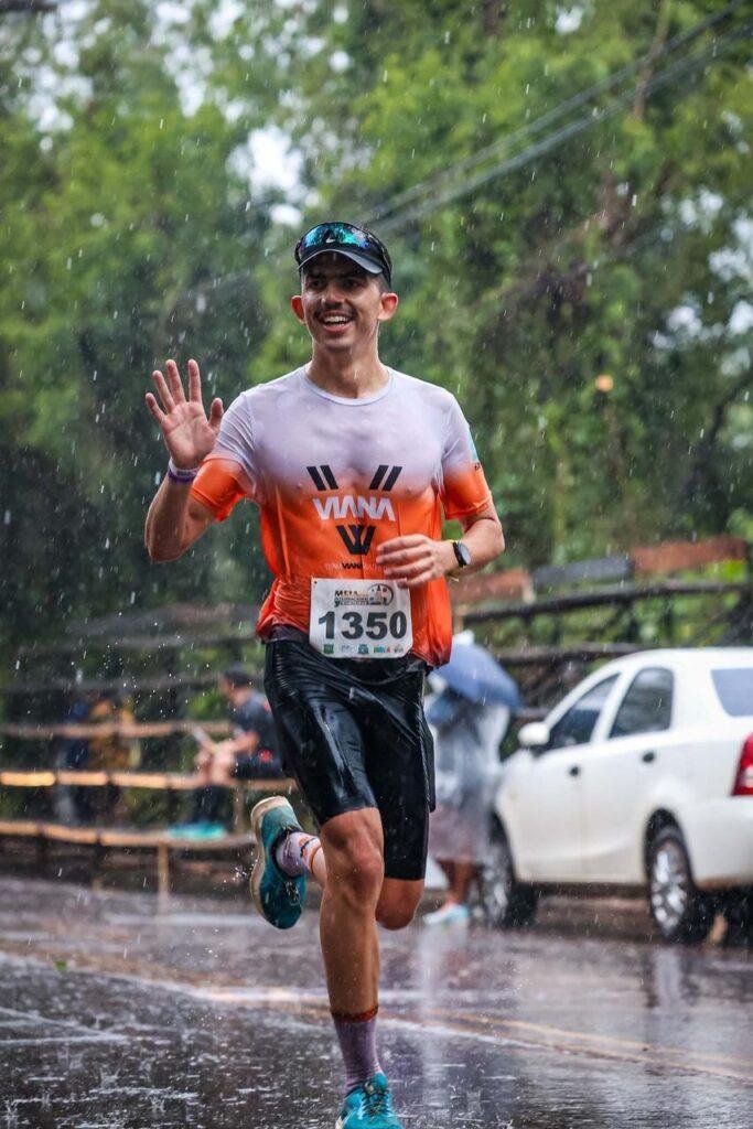 Antes da largada, a energia elétrica caiu no local. No momento do início da prova, a região enfrentava alagamentos e falta de visibilidade. “Ninguém desistiu. A chuva aumentou e seguimos juntos. Saímos por ruas alagadas, com buracos, e os atletas se ajudaram”, contou.