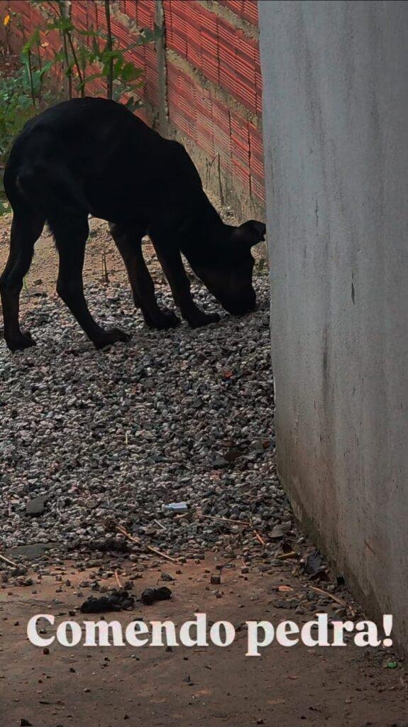 Segundo laudo veterinário emitido, o cachorro apresentava pulgas, carrapatos, caquexia e urina com alteração de espessura. De acordo com a equipe de resgate, o filhote chegou a comer pedras por fome e estava sem acesso a água e comida.
