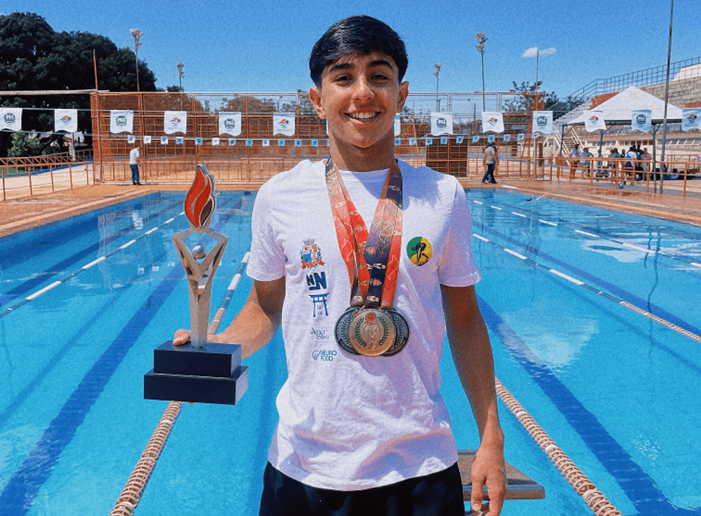 O nadador Gustavo Miranda, de 15 anos, formado na natação de Itapetininga, iniciou em 2026 uma nova etapa da carreira esportiva ao passar a representar, a partir deste mês, o Juventus de São Paulo.