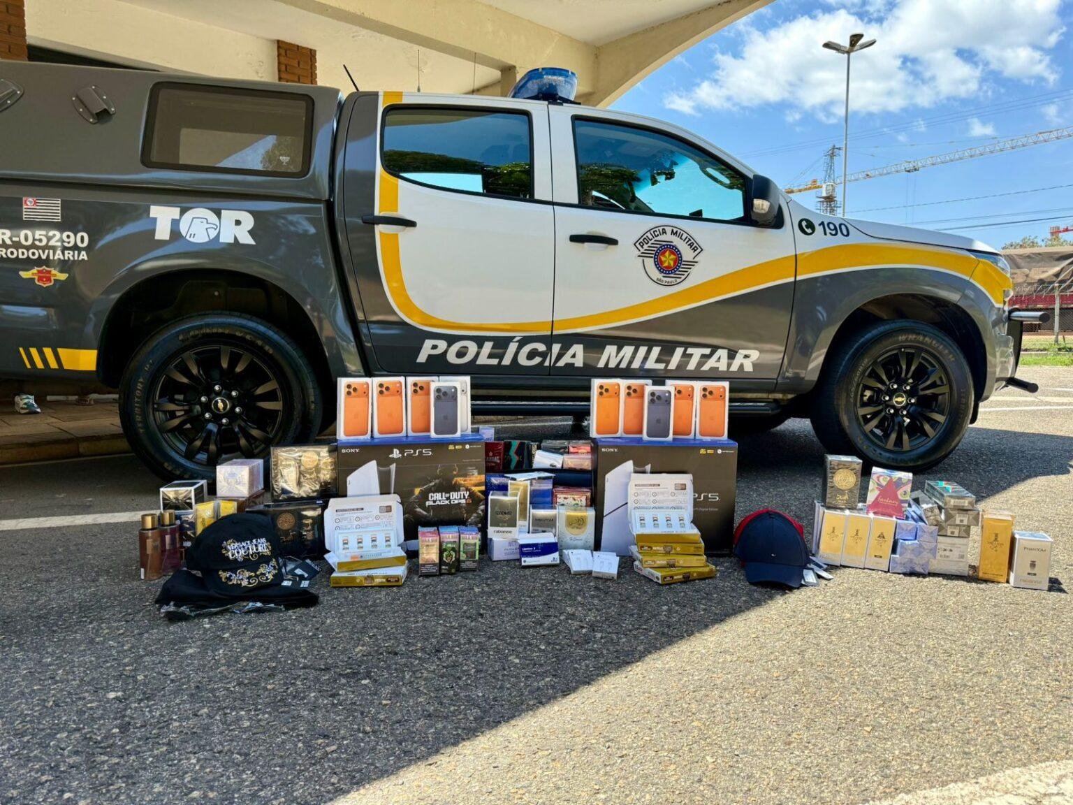 Segundo a Polícia Rodoviária, os agentes identificaram um veículo GM/Onix em alta velocidade e realizaram a abordagem. Durante a vistoria, foram encontrados eletrônicos, perfumes e medicamentos utilizados para emagrecimento cuja comercialização é proibida.