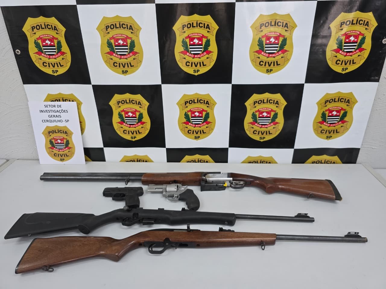 A Polícia Civil apreendeu armas de fogo na casa de um homem alvo de medida protetiva no dia 23 de fevereiro, em Cerquilho. A ação ocorreu em investigação por violência doméstica, ameaça e perseguição contra a ex-mulher.